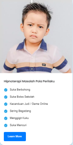 Rumah Hipnoterapi Anak Bandung : berpengalaman menangani keluhan diatas, dengan ribuan klien dengan hasil sangat baik.